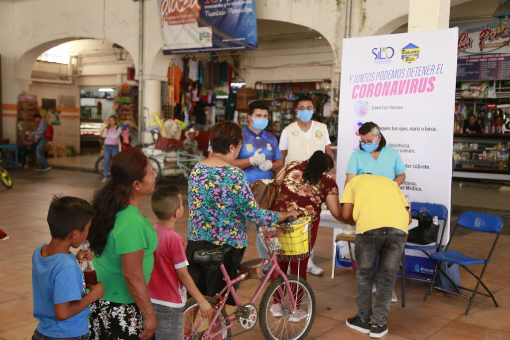 La Presidencia Municipal atendió inmediatamente las recomendaciones que las autoridades sanitarias emitieron por lo que puso en marcha la instalación de 5 módulos informativos y la entrega de 24 mil recipientes individuales de gel para la población.