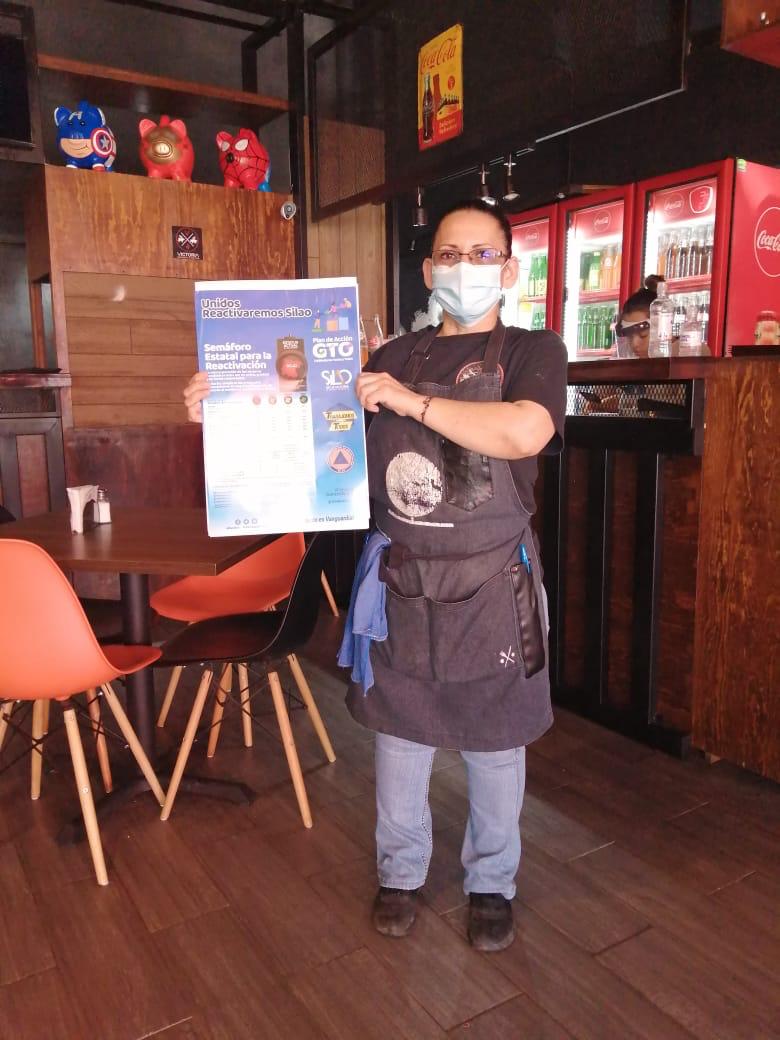 La estrategia tiene como objetivo reactivar gradualmente la economía, por lo que se visitaron a comerciantes y empresarios, invitándolos a participar activamente en el Plan de Acción “Unidos Reactivemos Guanajuato” y atiendan las medidas sanitarias para prevenir el coronavirus”.