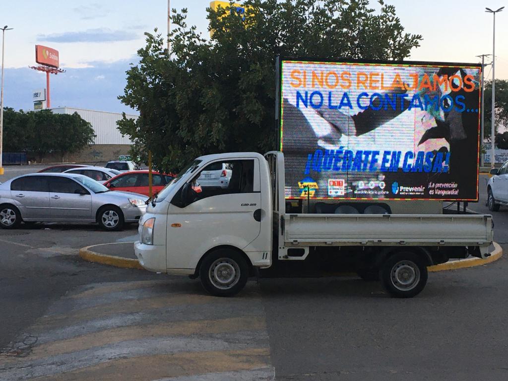 El vehículo destinado para el alcalde y los escoltas comisionados a su seguridad, se unieron a las tareas de vigilancia de la ciudad y de zonas escolares, además de perifonear las medidas preventivas y el exhorto a la población a quedarse en en casa.